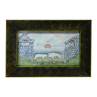 Seven Sheep Overlooking House and Bridge | 11 3/4" x 11 3/4"